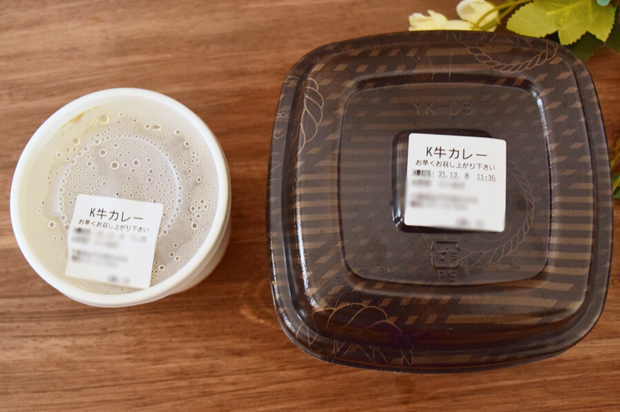 - カリガリ牛カレー・・・店内価格:547円(税込)・持ち帰り価格:537円(税込)