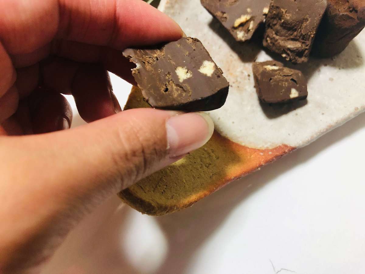 マーブル模様の濃い抹茶の部分はしっとりしていて苦味も感じますが、ホワイトチョコがマイルドな味わいにしてくれます。