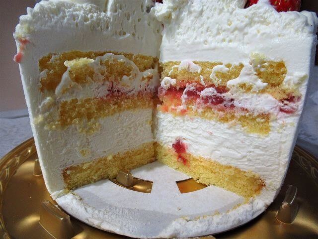 真ん中には、厚みのあるホイップクリームと果肉入りの苺ソースがサンドしてあります。