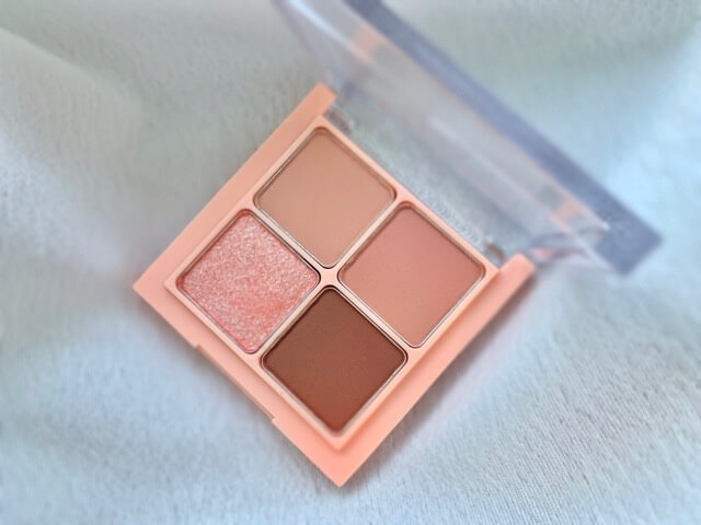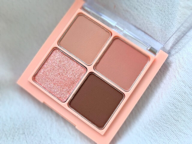 4色パレットの「ロムアンド ベターザンアイズ」は、マットアイシャドウが3色、大粒ラメアイシャドウが1色入り。