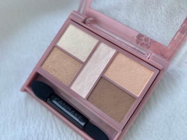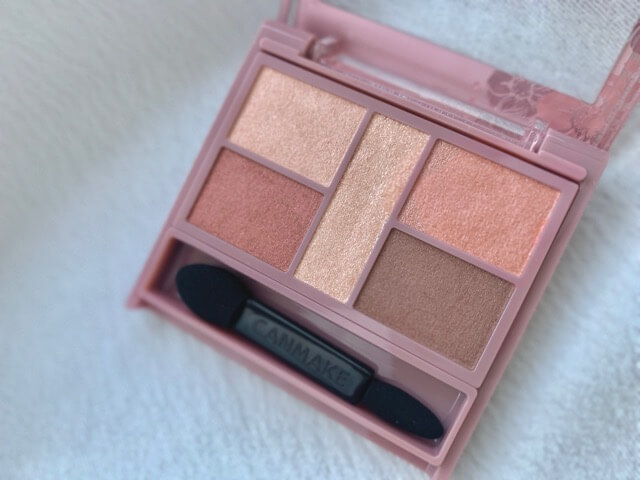 中央には程よい大きさのラメアイシャドウが入っていて、5つの色と質感が楽しめるようになっていますよ。