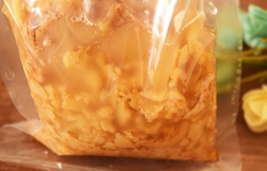 上記の湯せん時間はあくまでも目安。私が作った時には麺6分での湯せん時間では解凍されず、結局10分位湯せんしました。