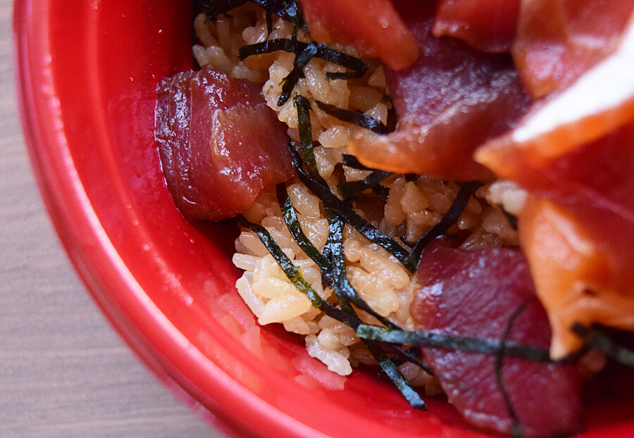 まさかなにげなく手に取ったワンコイン丼で赤シャリが楽しめるとは……!さらに調べてみたところ、羽田市場と業務提携しているスシローも「赤シャリ」を使っているそうです。