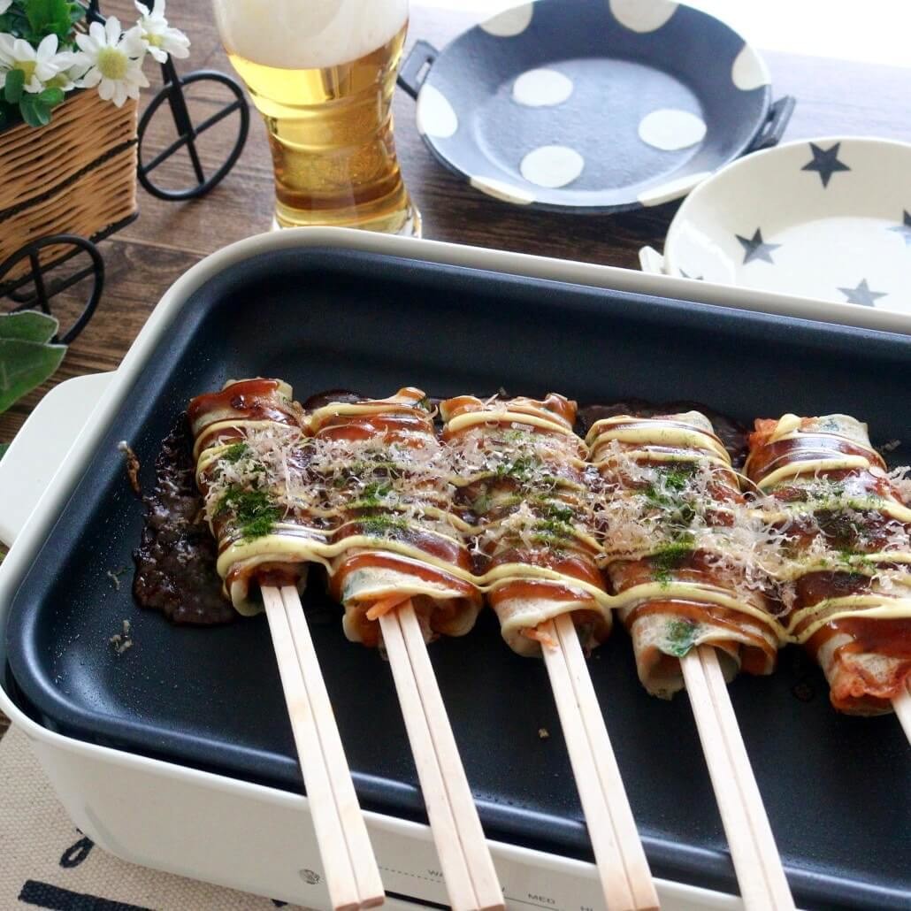 mokomelo_さんが作ったのは、お好み焼きを箸で巻いた屋台風。