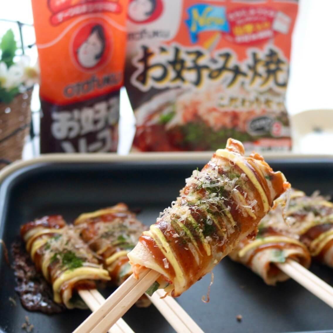 屋台気分をおうちで! キムチ入り箸巻き風お好み焼き