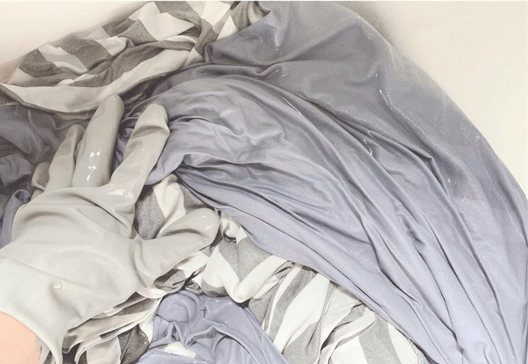 オキシクリーンがシーツ全体にいきわたるようよく混ぜて、1~2時間漬けておくと...