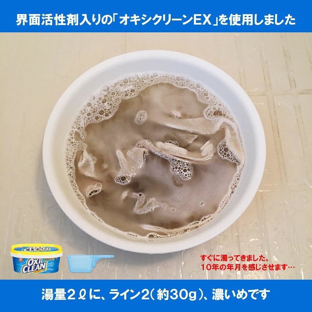 界面活性剤入りのオキシクリーンEXを使って、オキシ漬けをした田邊さん。