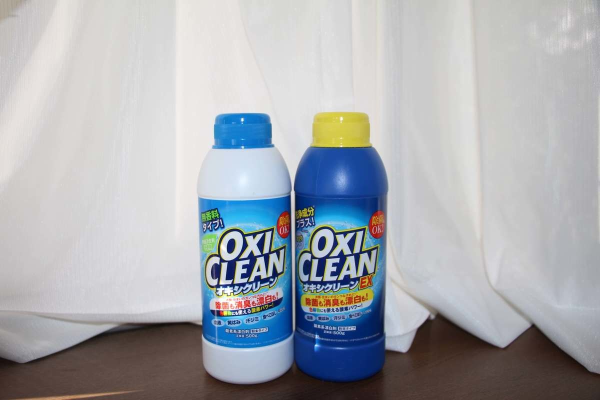 - 写真右:オキシクリーンEX(洗浄成分が入ったタイプ)