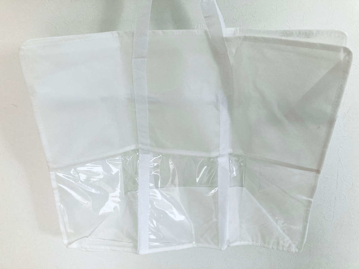 バッグ前面の下半分は、中身が見やすいようになっています。わざわざ開けて確認しなくても、入れたものが一目でわかるようになっていました!これは嬉しい♪