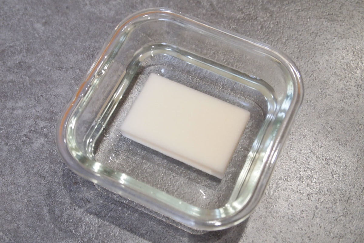 ①を電子レンジに入れ、ラップを掛けずに600Wなら1分半、500Wなら1分50秒加熱します。