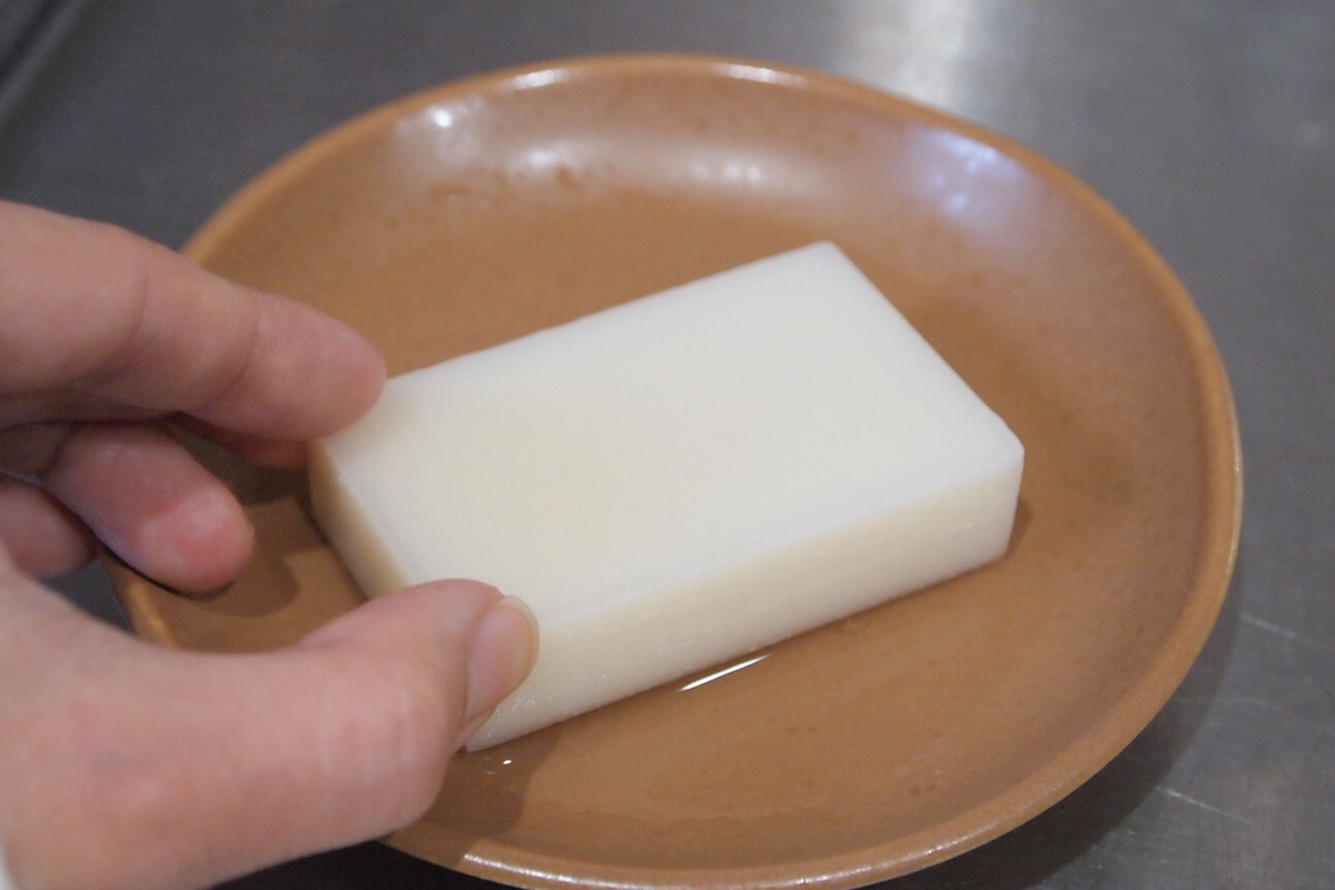 レンジで加熱したお餅もいただくと...こちらもつきたてのお餅級のやわらかさ!なのですが、水につけたせいか、お餅の風味が若干弱いかなぁという印象でした。