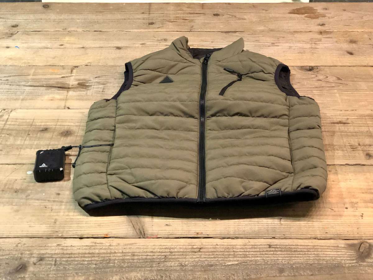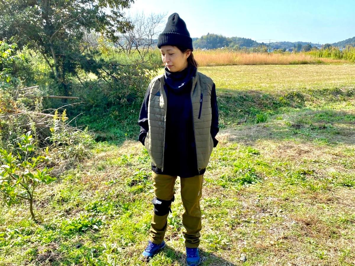 アウターは、ジャケットやコートではなく、動きやすさを考え、あえてヒーターベストを選びました。