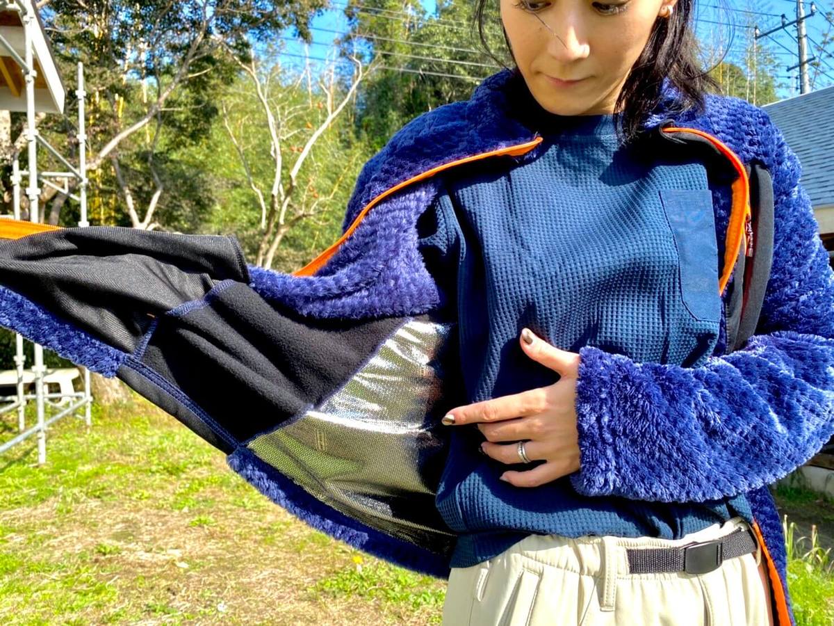 実際に着用してみると、アウターは思っていた以上に軽く動きやすかったそうです。内側のフリース素材の肌触りもお気に入り。
