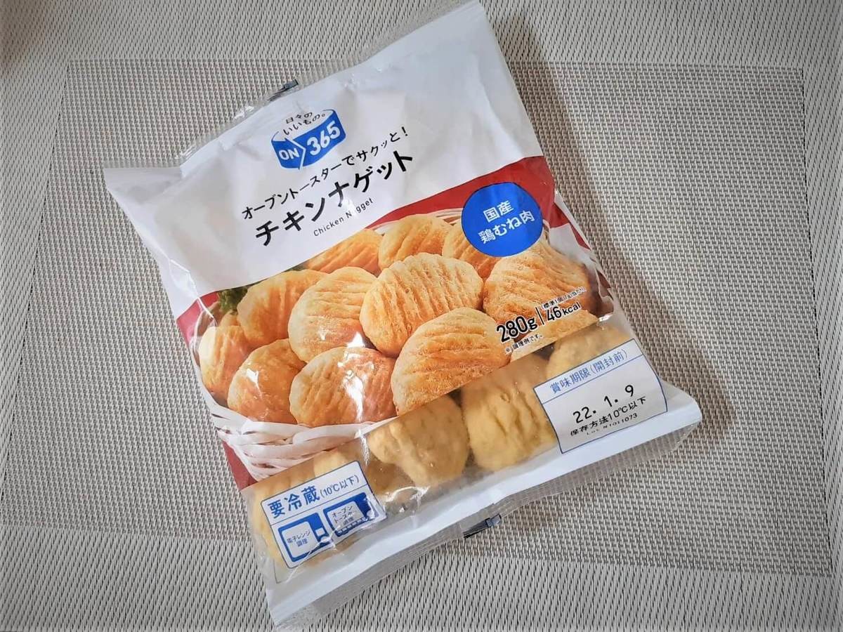 コスモスのオリジナルブランド「on365」のナゲット。 国産鶏肉を使ったナゲットで、製造元は日本ハム食品です。