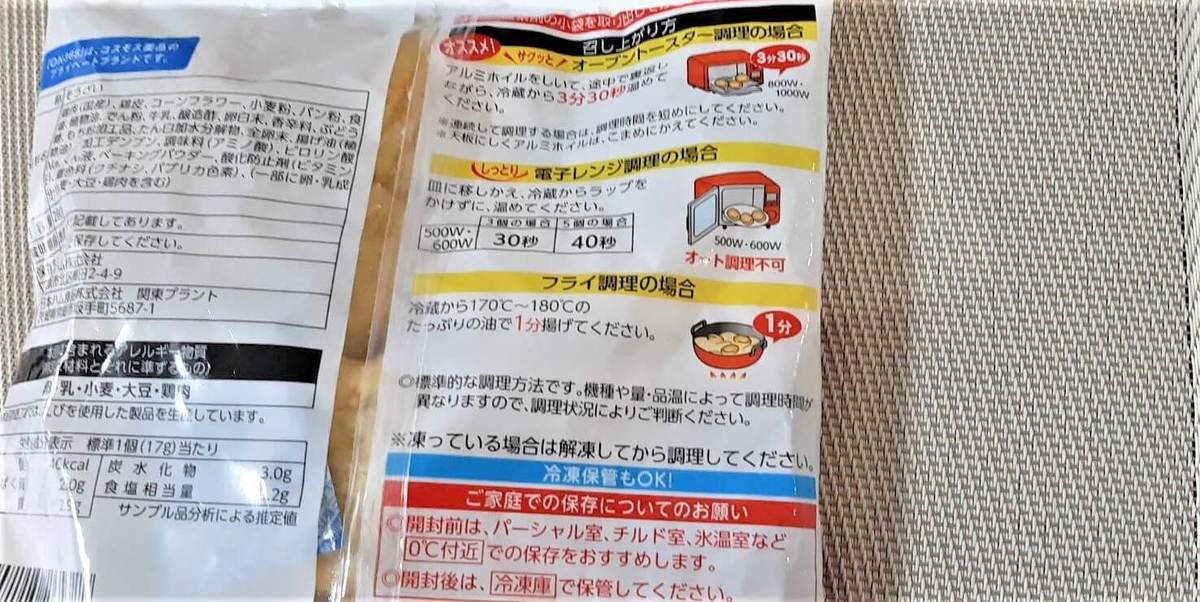 小ぶりサイズのナゲットはそのまま食べてもおいしいのですが、基本的にはオーブントースターでカリっとなるくらいに焼くだけでOK。