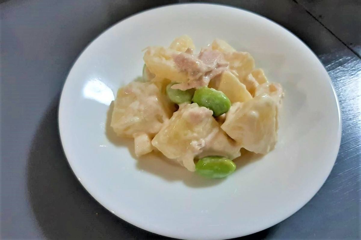 こちらは茹でたじゃがいもがメインのマヨサラダ。ツナフレークが入ることで味のアクセントになります。