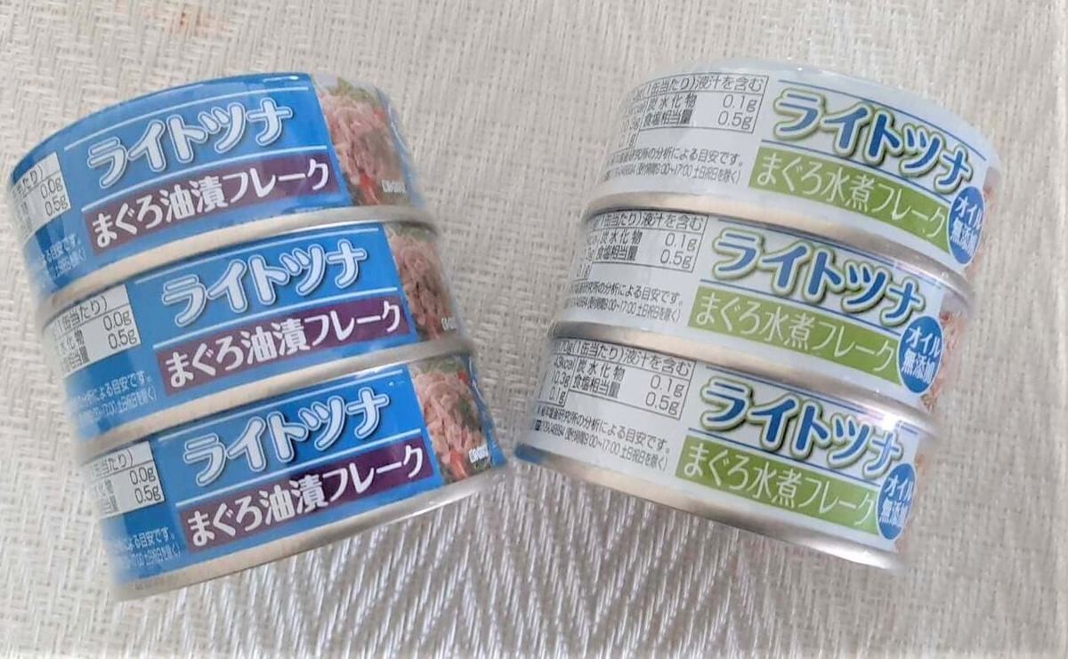 「まぐろ油漬フレーク」と「まぐろ水煮フレーク」の2種類あります。