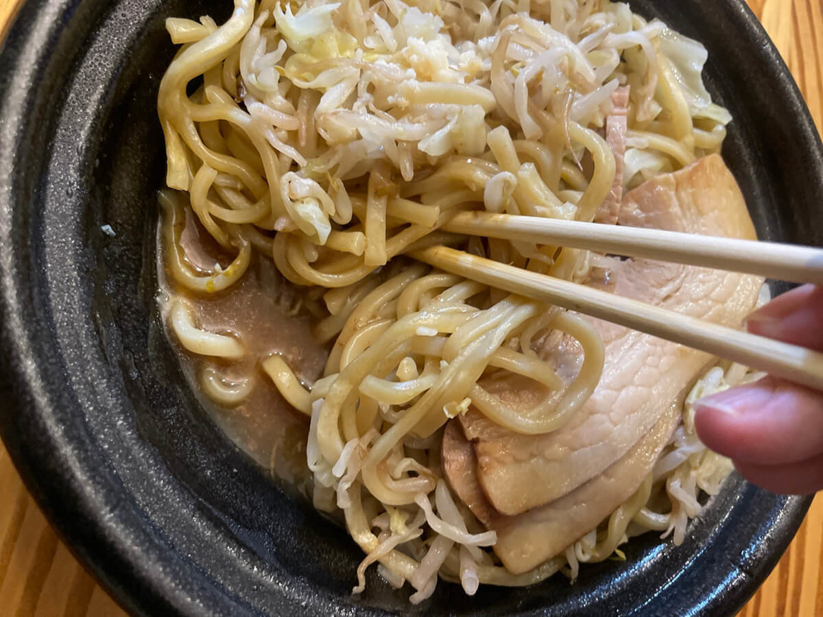 それに加えて二郎系ラーメンの代名詞ともいえる、野菜がたっぷり入って美味しそう!食べ応えがありそうです。