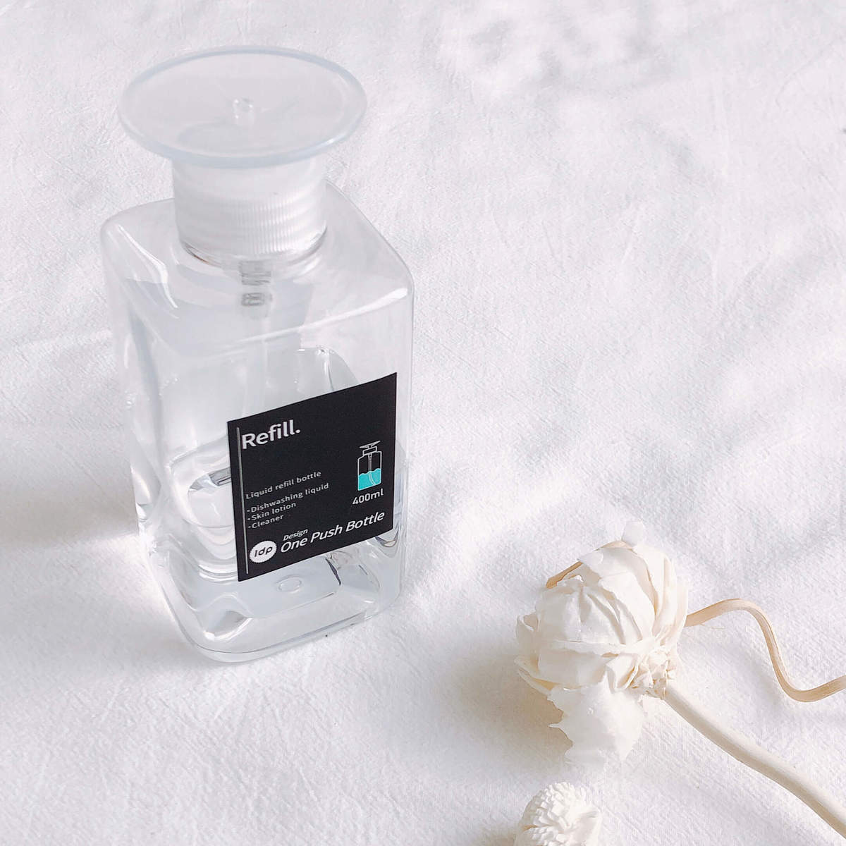 キッチンやトイレでも片手でワンプッシュ!四角い形なので押しても倒れづらく、安定していて使いやすさ抜群です!
