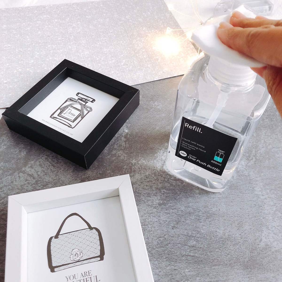 ダイソーで、おしゃれなクリアのワンプッシュボトルを発見しました。
