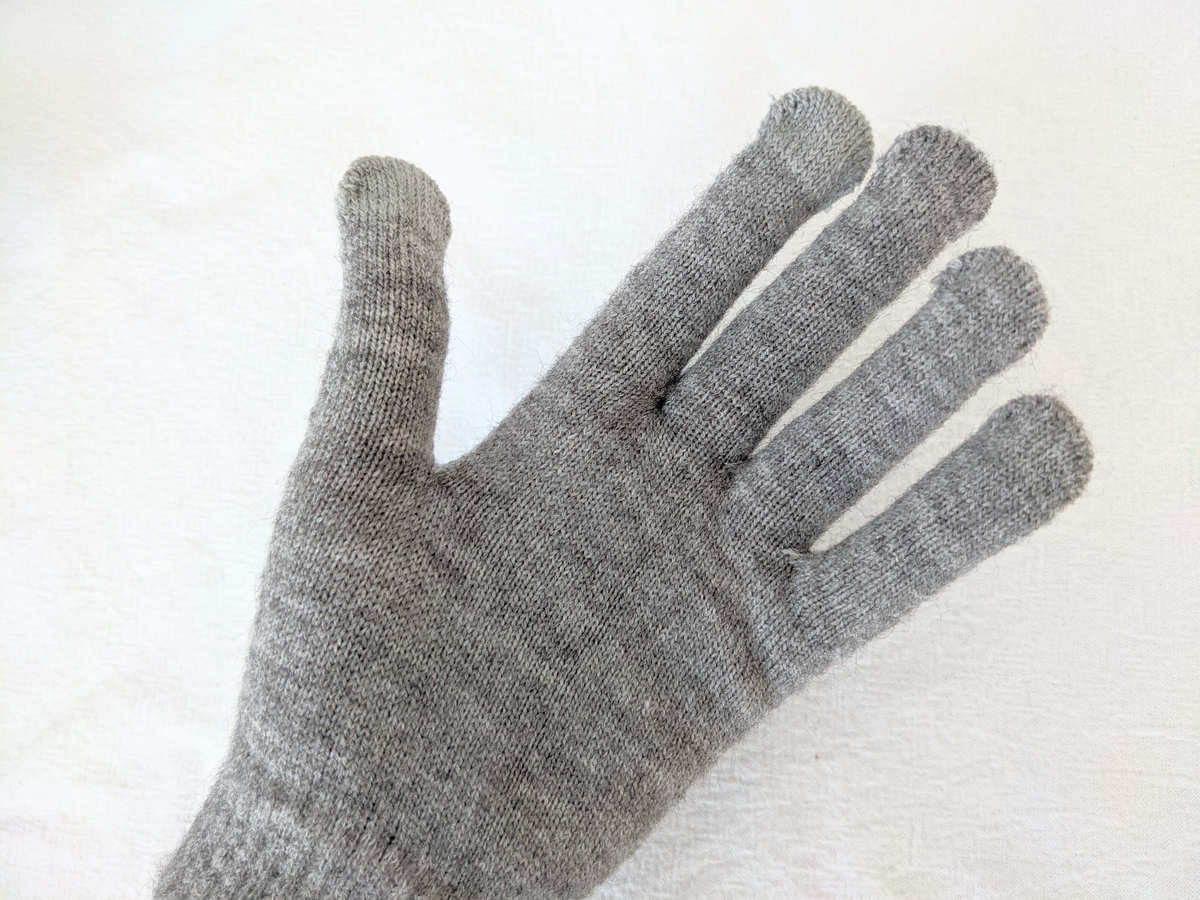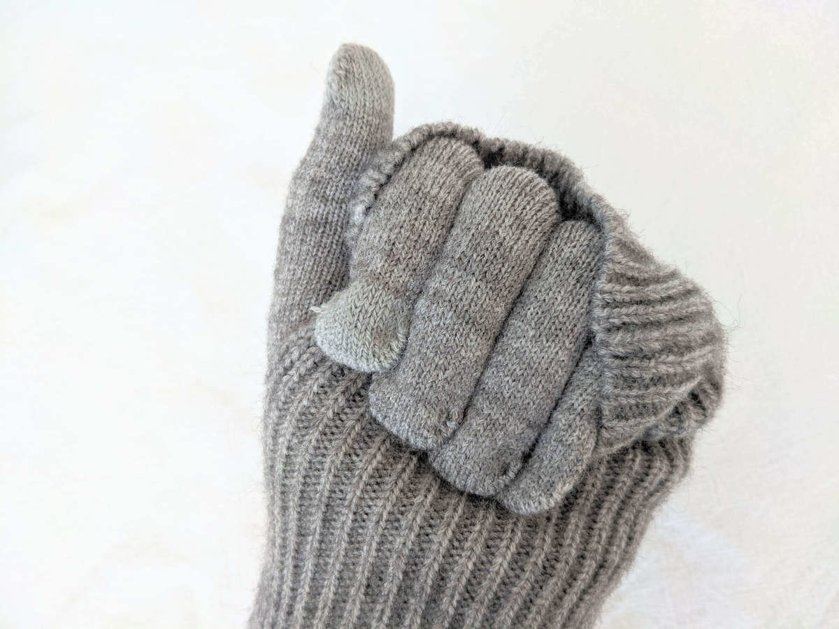 シンプルに手袋のみで使っても。 親指と人差し指に金属繊維を使用しているため、スマホを見たいときに手袋を外す必要がありません。