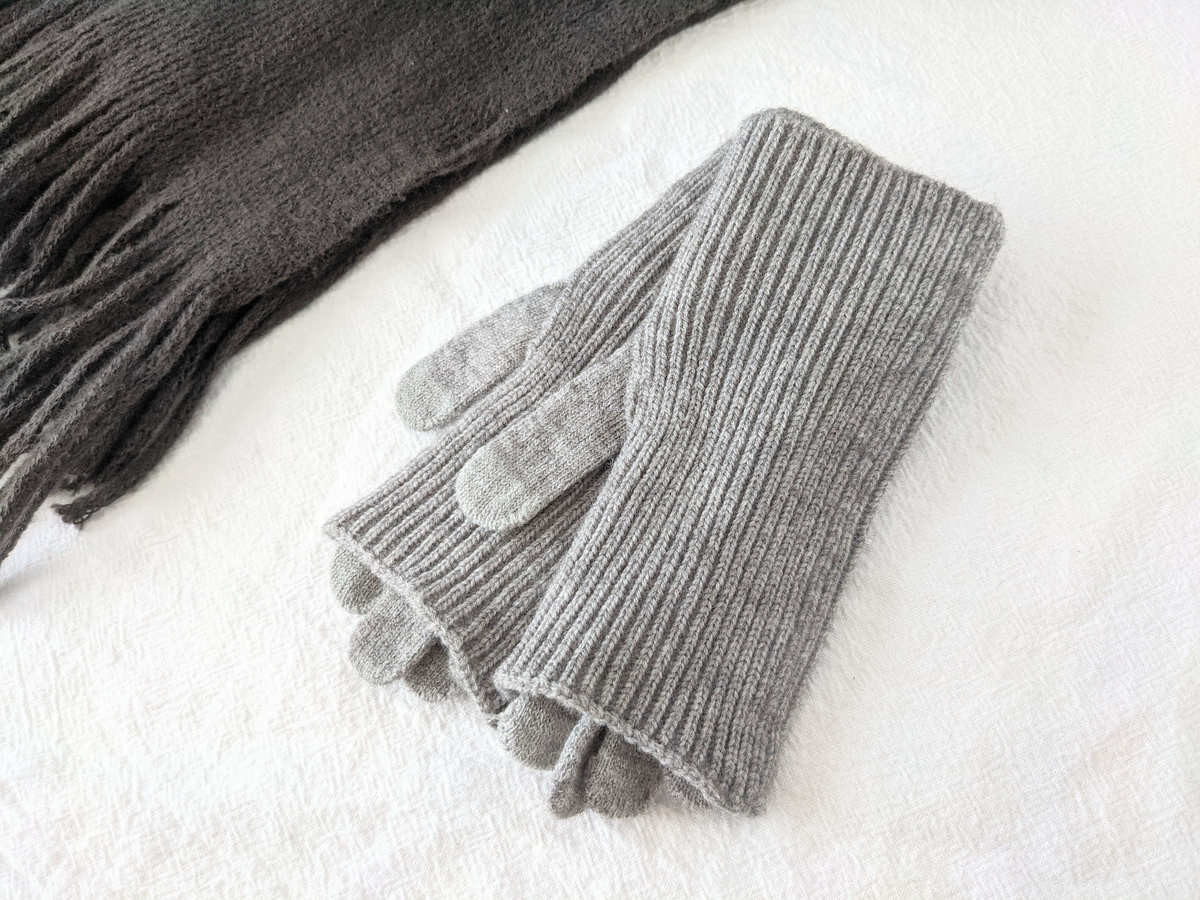 アームウォーマーを重ねても、手袋の指先は出るので動かしやすいです。 シーンに合った使い方ができますし、また冬のおしゃれを楽しみたい方にもおすすめ。