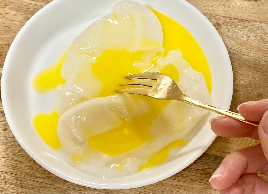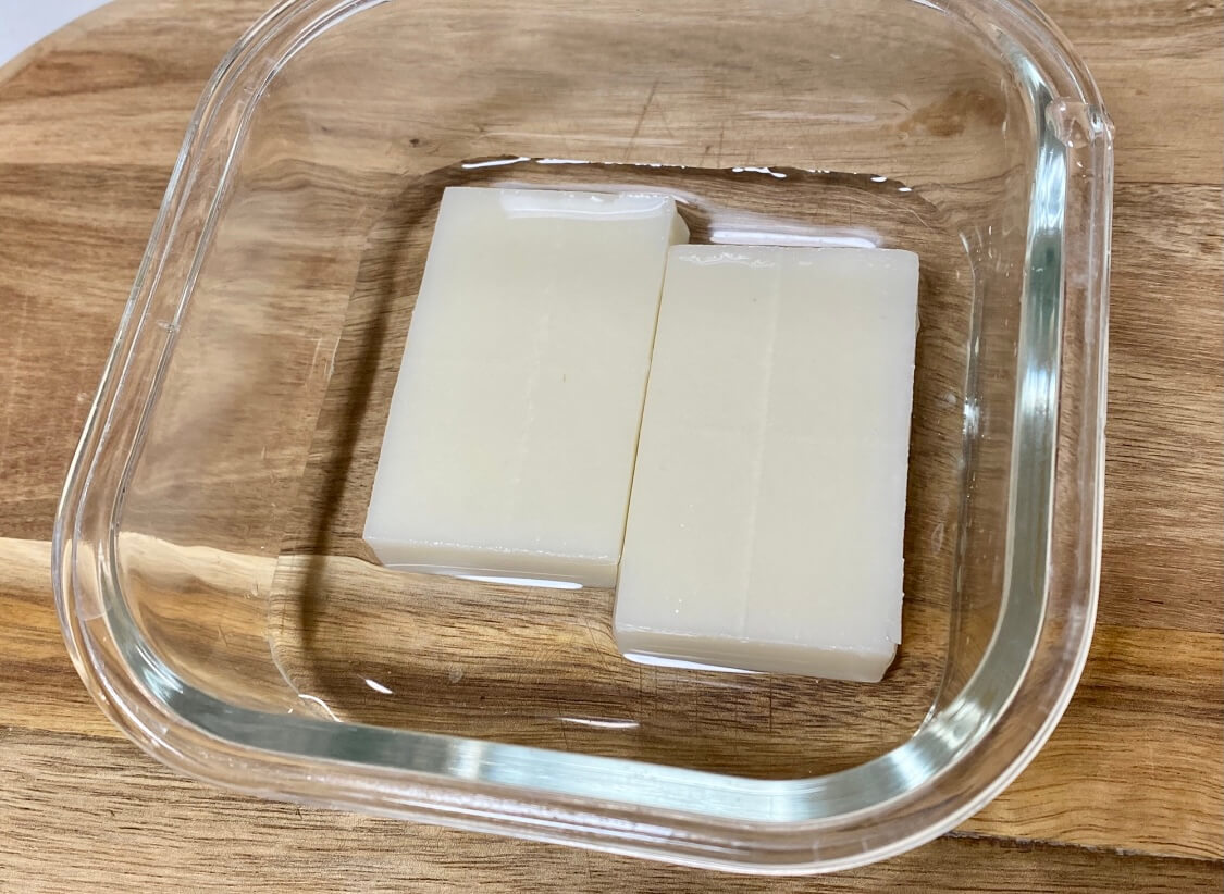 耐熱容器にお餅を入れて、水を半分浸かるくらいまで注いだら、電子レンジ(600w)で2分、(500w)で2分半加熱しましょう。