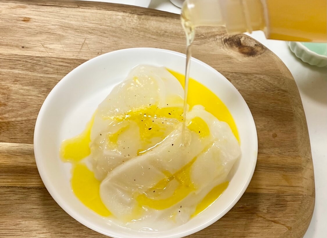 ペッパーバターハニー餅の作り方③塩こしょうとはちみつをかけて完成