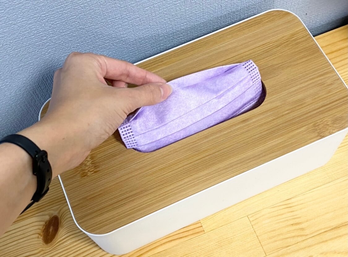 マスクを中にセットし、使いたい時はティッシュ感覚でシュッと取り出すことができてノーストレス!