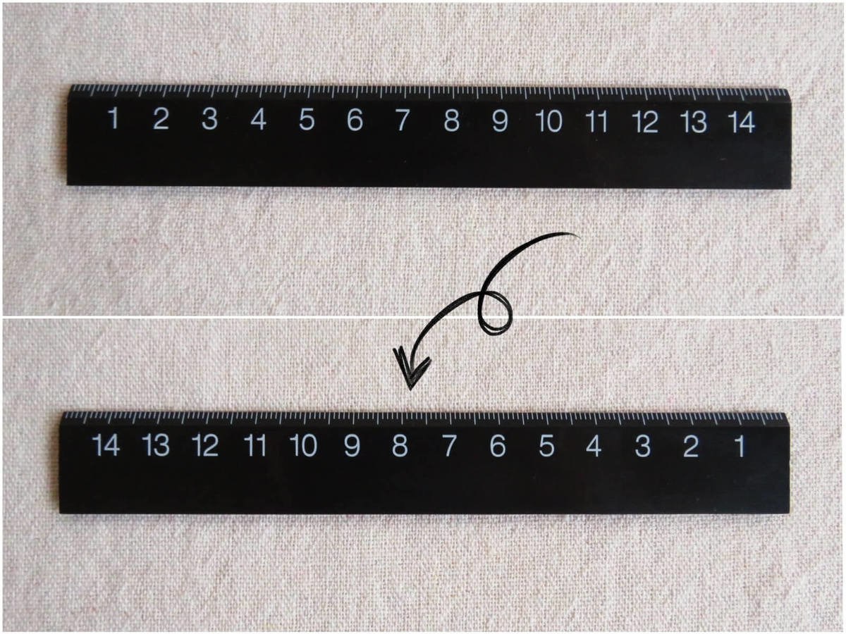 両面に印字されていて、裏返すと目盛りの入り方が逆になっています。