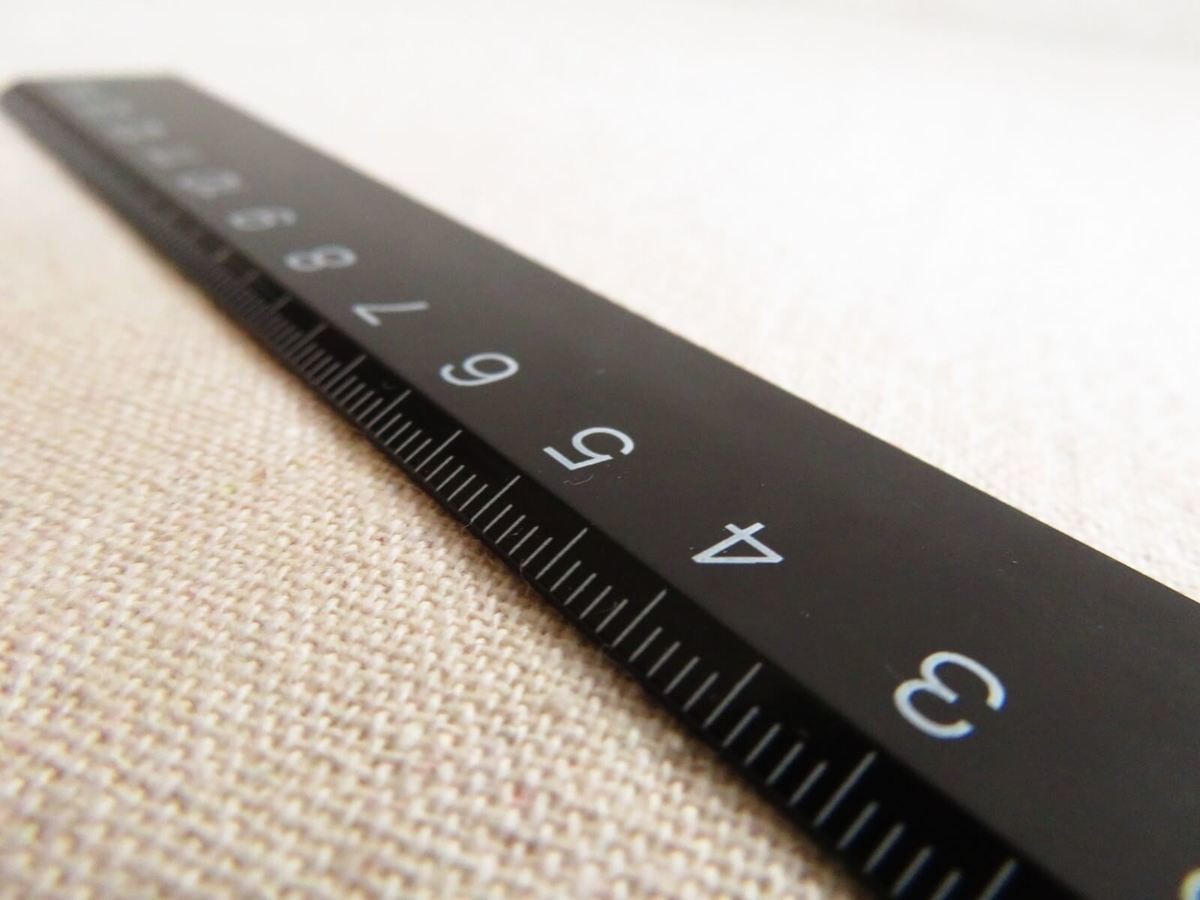 この定規は目盛りが認識しやすい白黒の配色で、疲れてショボショボになった目でも負担なく使うことができます。