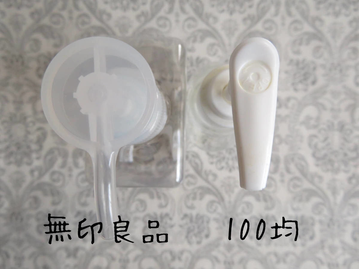 100均の方はポンプがかたく、押すとキシッとした感触が。中身は出るものの、「よっこいしょ感」がありました。