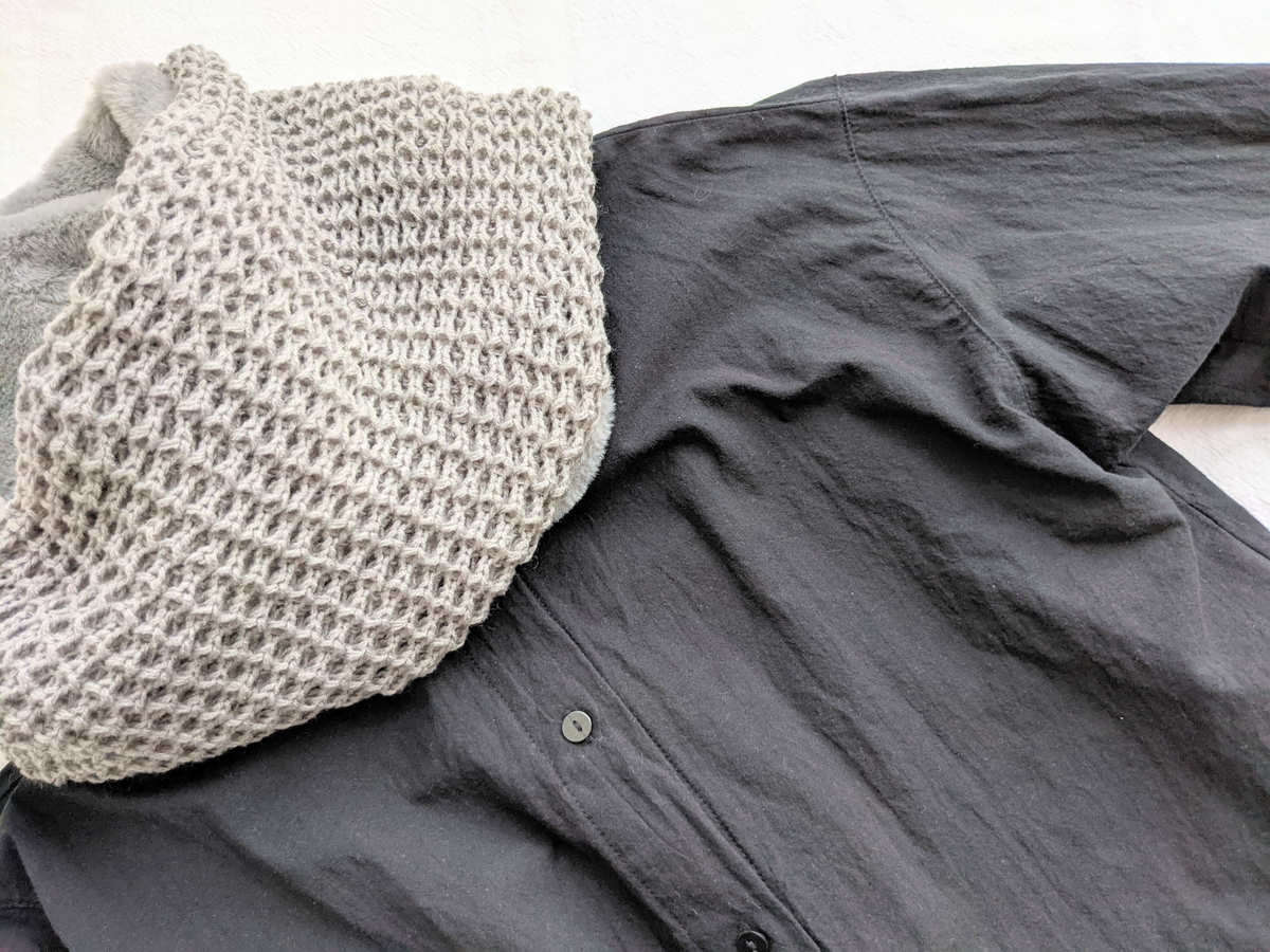 こちらはワッフル編みデザイン。 テイストを問わずに使えるため、どんな服装にも合わせやすいです。