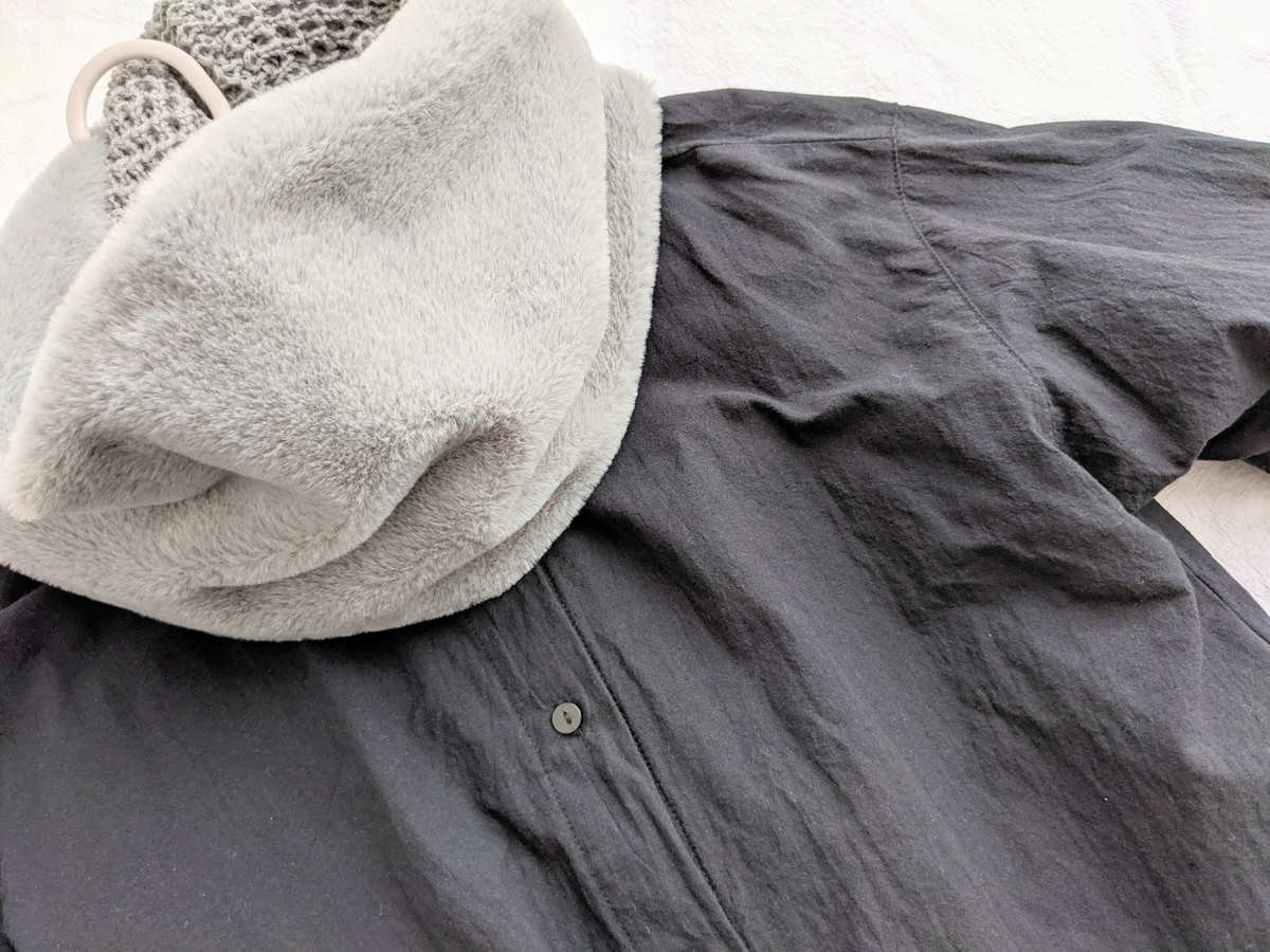 裏返すとファー仕様に変身します。 同じ服装でもガラッと雰囲気が変わり、顔周りが華やかな印象に。