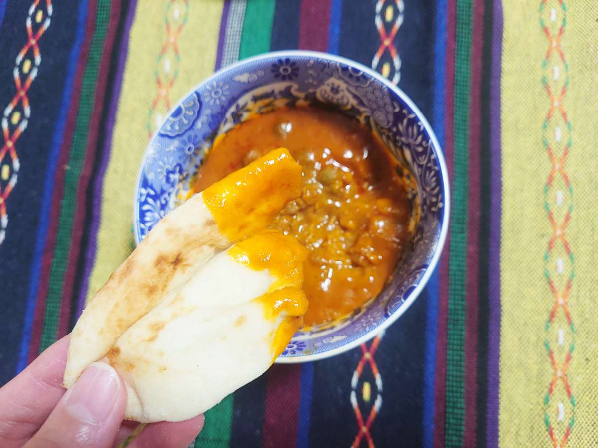 ナンは、他のスープにも合いますし、チーズを載せて焼いたりはちみつやジャムをかければ単体でも楽しめるので、常備しておきたい1品です。