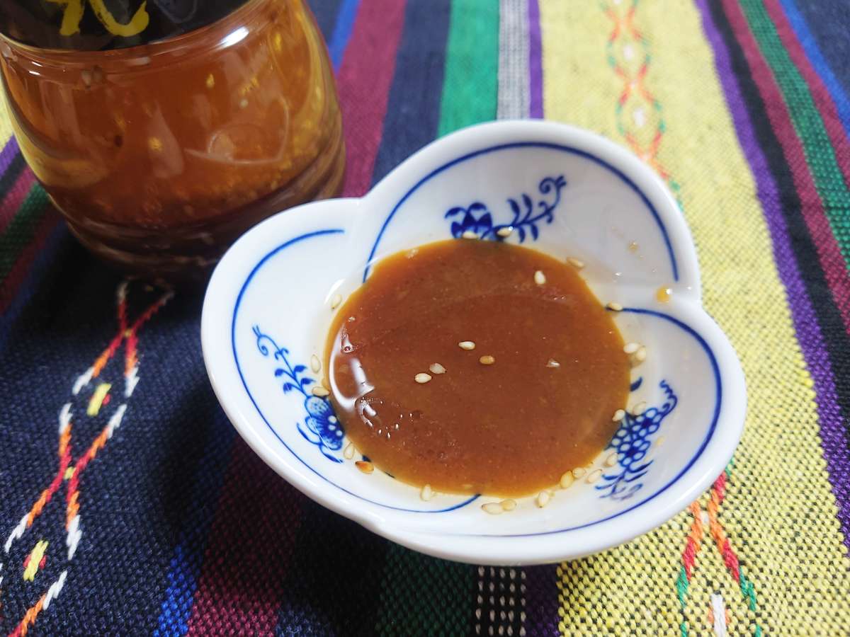 しょう油ベースでごまとにんにくがたっぷりのサラダ用ドレッシングです。