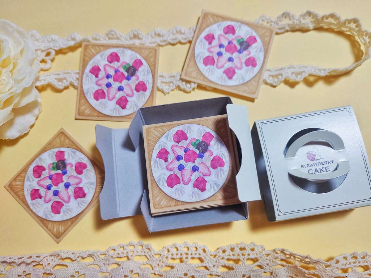 メモのケースはケーキボックスのデザイン。私はストロベリーケーキを選びました。