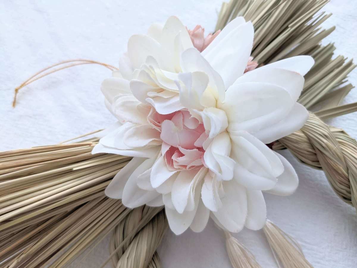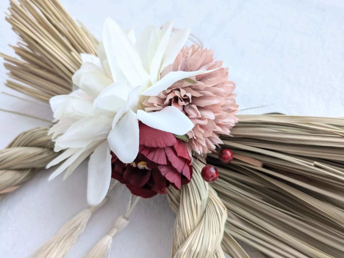このように造花を組み合わせていて、ナチュラルな雰囲気の中に上品さも感じられます。