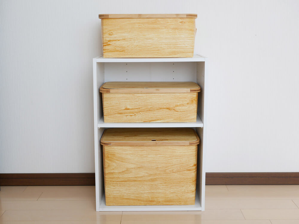 カラーボックスに2段重ねて置けるロータイプです。6ロール入るサイズ感です。