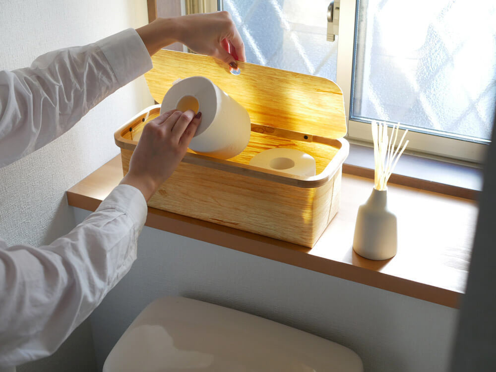 ペーパーやサニタリー用品をさりげなく隠し、水洗いもできるから衛生的に収納できます。