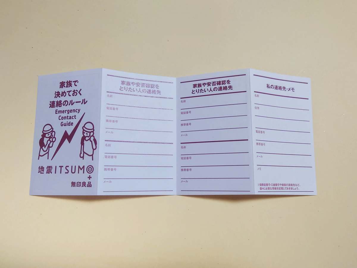 メモ帳には、自分や安否確認をしたい人の連絡先を記入する欄があります。