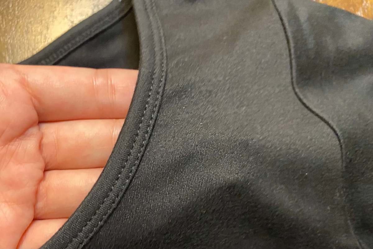 筆者はブラックカラーを愛用していますが、厚さがあるため下着が透けにくく、まさに言うことなし!