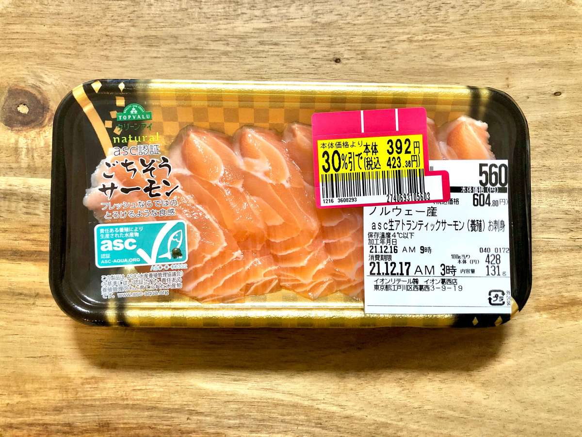 イオンのアトランティックサーモンは、脂がしっかりのっていてとにかくリッチな味わいです。