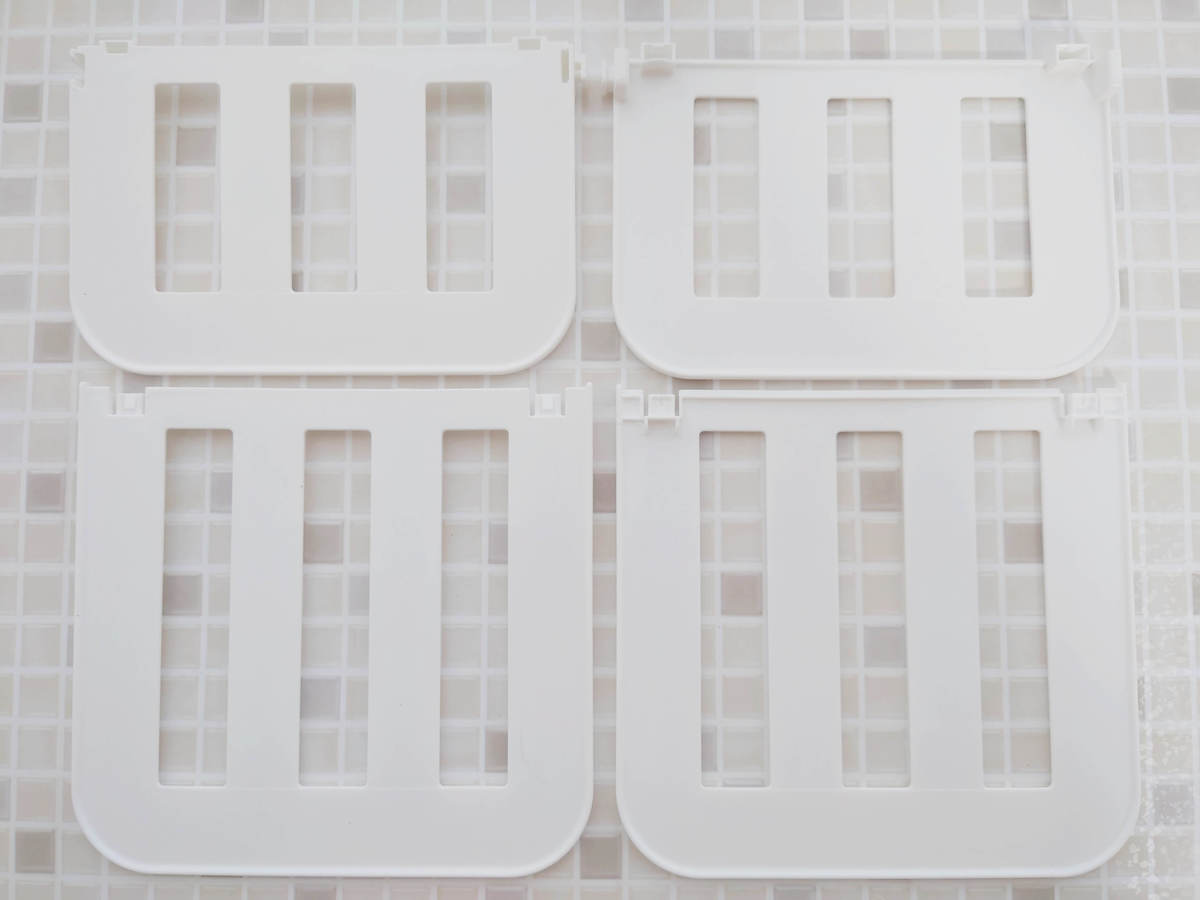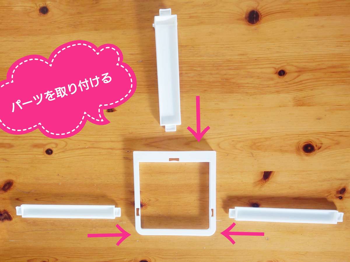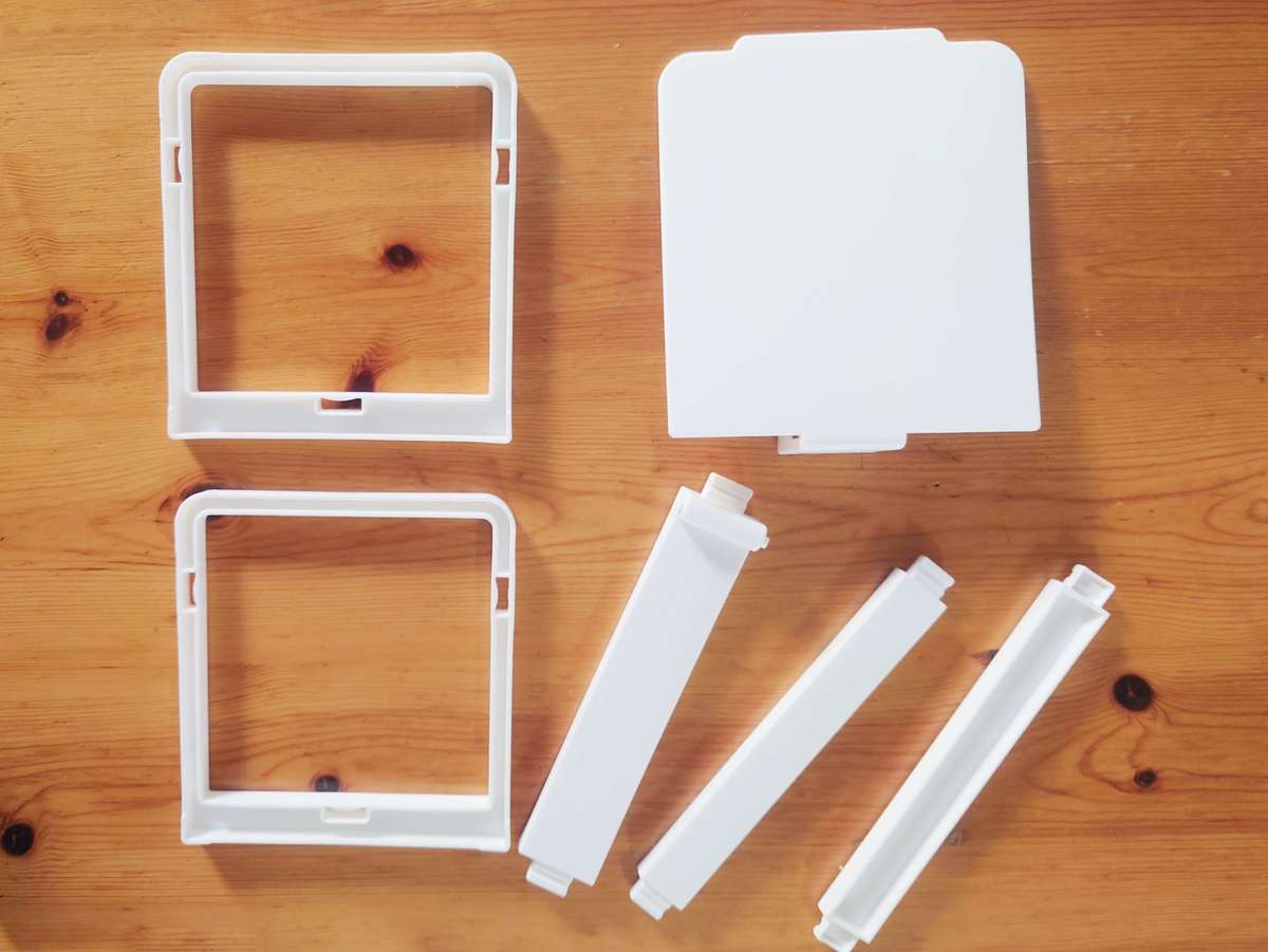 左から、フレー厶2枚、フタ、連結パーツ3本です。