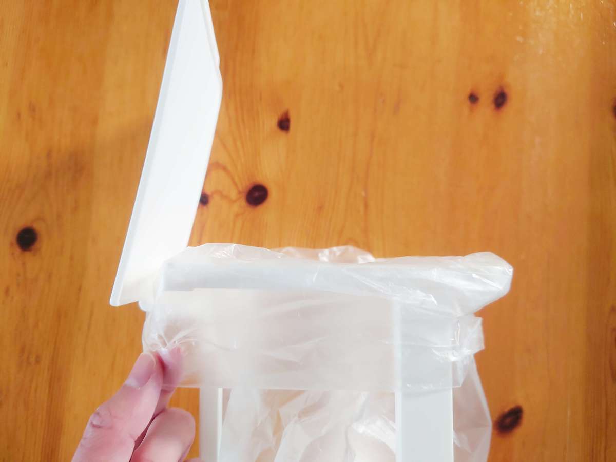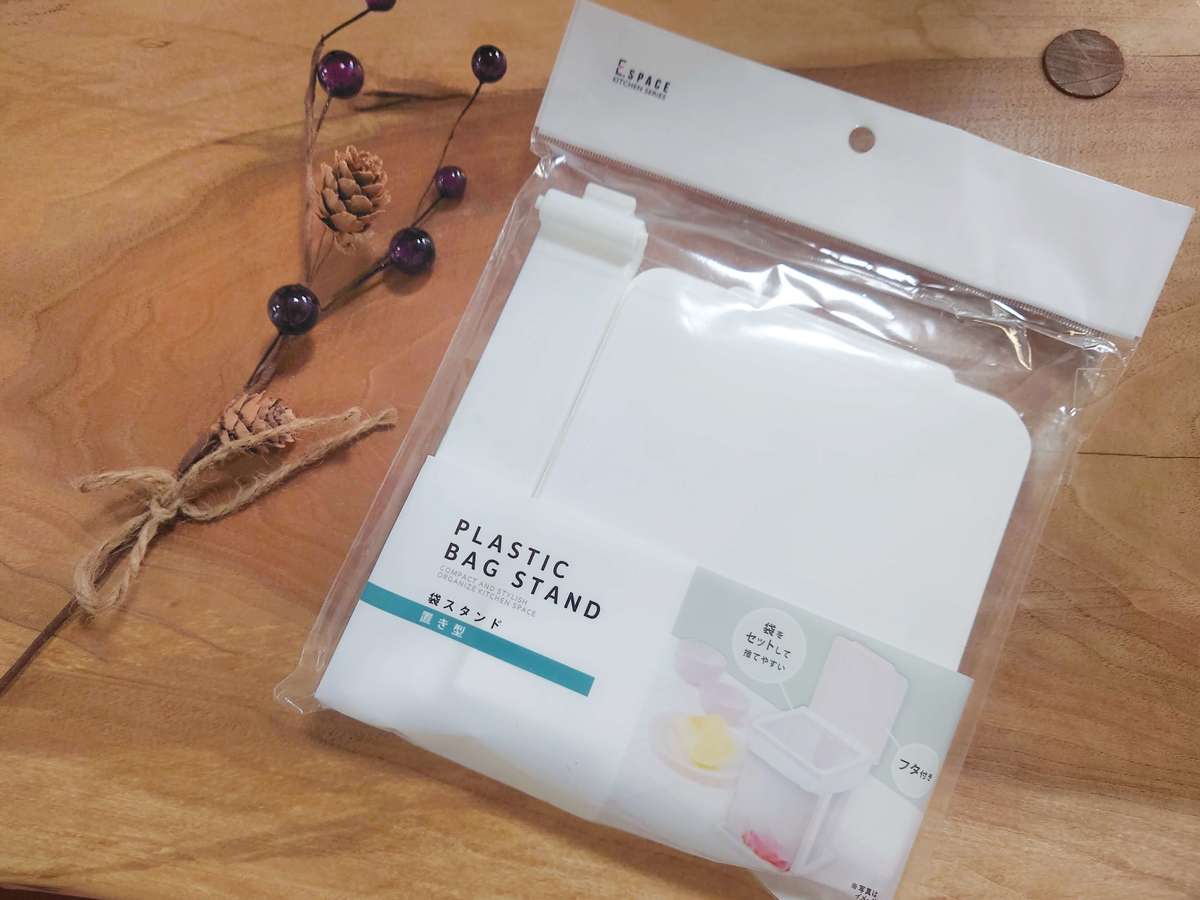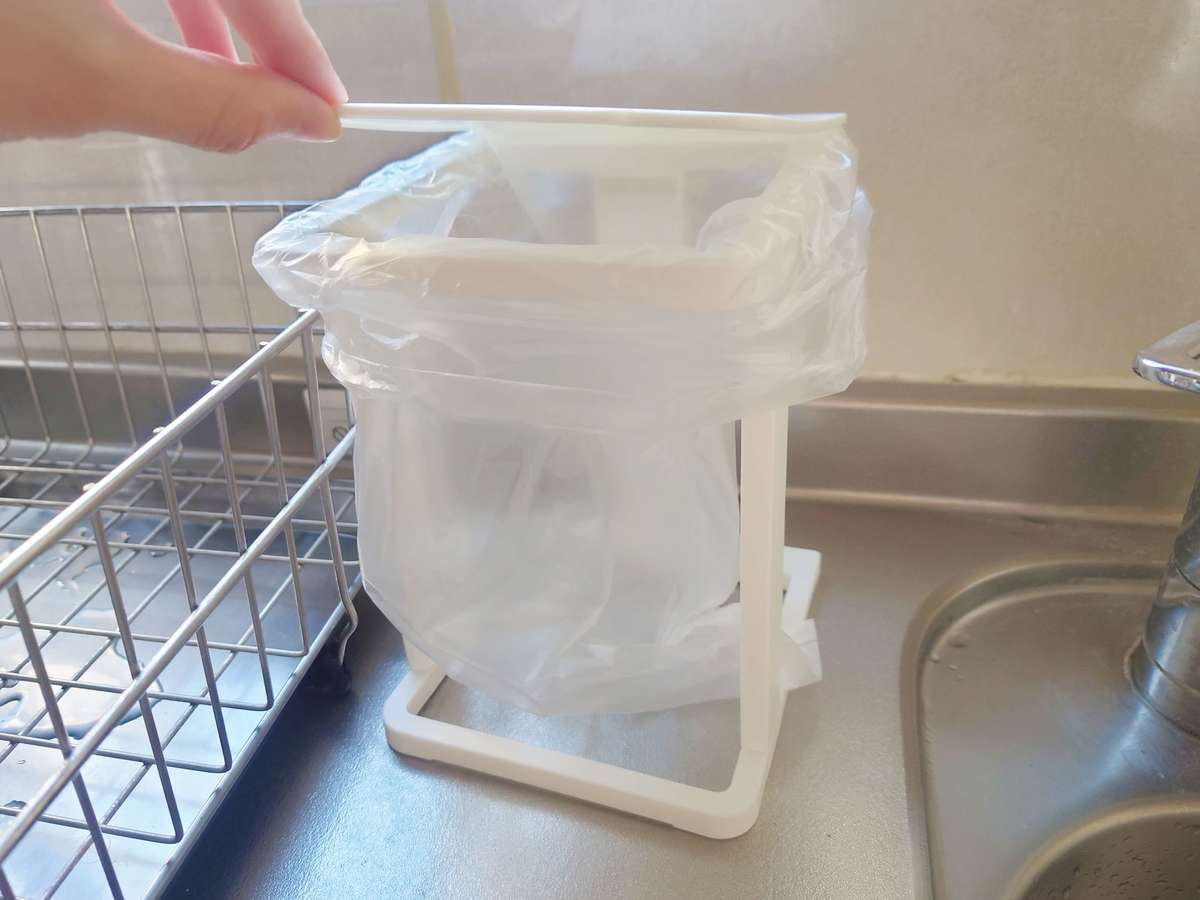 ビニール袋をゴミ用に置いておくと、くしゃっとなりゴミを入れにくいのですが、スタンドがあるとキッチンがきれいに使えますね。
