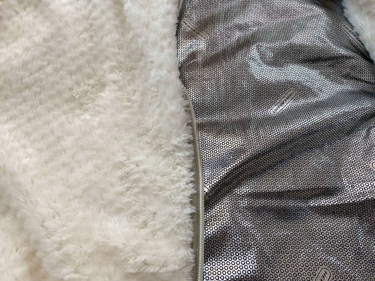 ゆったりしていて動きやすいにも関わらず、背中部分にアルミプリントが施されているので、薄手ながら驚きの暖かさなんです!