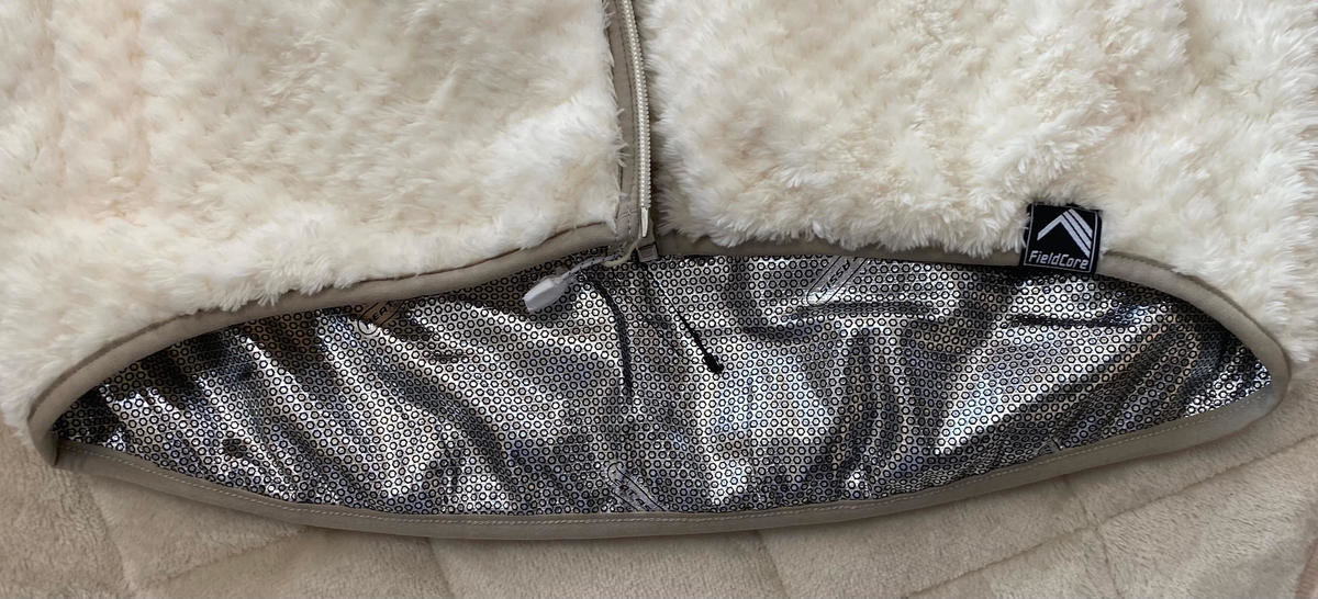 背中部分にはアルミプリントが使用されていて、遠赤外線を放射!首が少し覆われているので、冬の冷たい冷気から首元を守ってくれます。