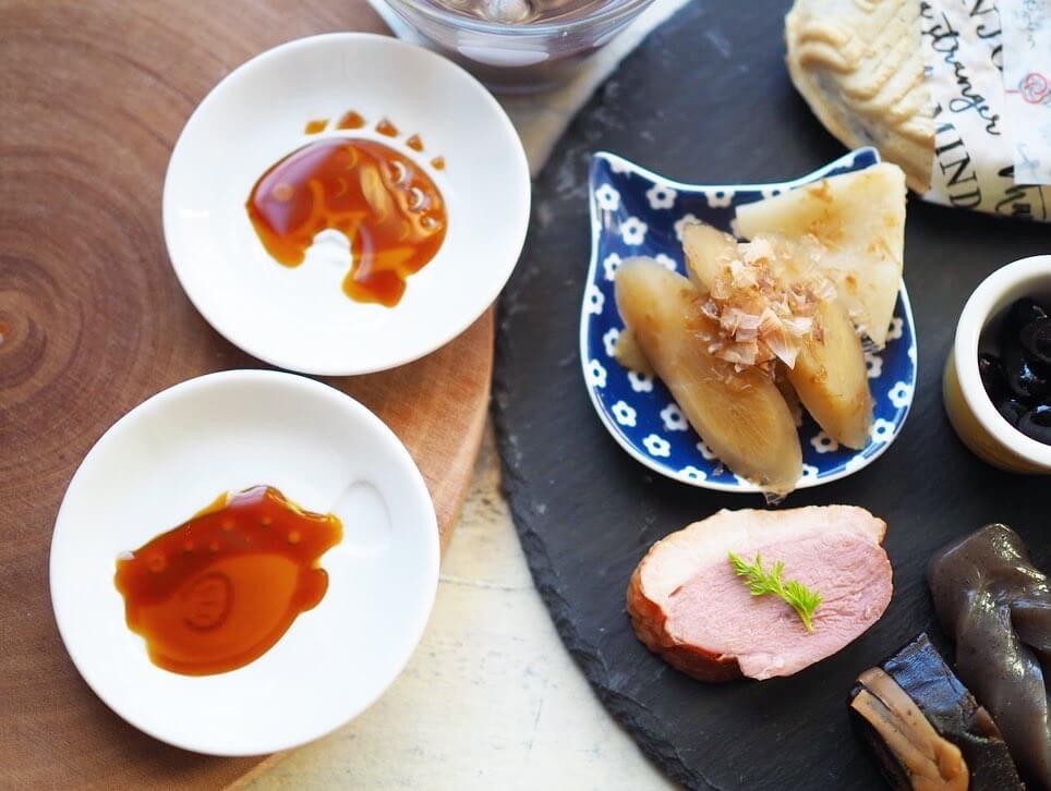 セリアで販売されている鯛とフグの醤油皿もおすすめアイテムです。こちらは醤油やたれなどを入れると絵柄が浮かび上がって見える技あり小皿なんです。