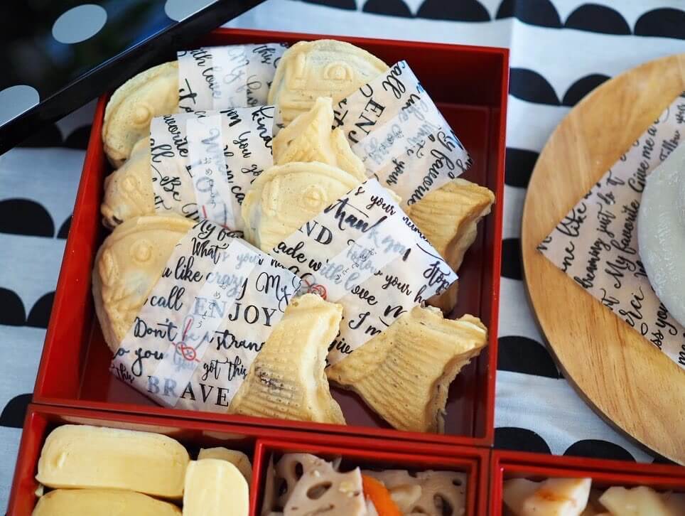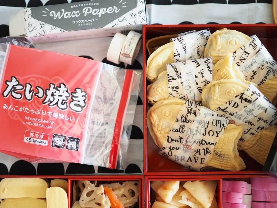 素朴な印象のたい焼きも、クッキングシートやおめでたい柄のマスキングテープでおめかしすると華やかな印象になりますよ!