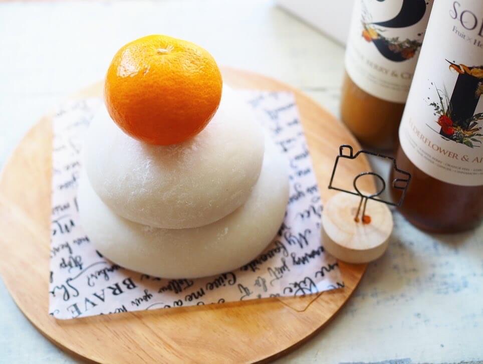 同じくセリアのモノトーンのクッキングシートを鏡餅の敷き紙にすると、洋風でスタイリッシュな雰囲気になっておすすめです♪